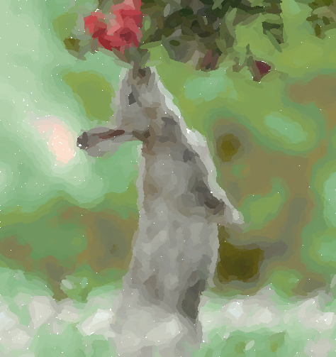 Our next step was to design a new color palette based on Monet's most frequently used pigments: Titanium White, Cadmium Yellow Light, Cadmium Yellow, Viridian Green, Emerald Green, French Ultramarine, Cobalt Blue, Madder Red, Vermillion, and Ivory Black. We obtained RGB values for each of these colors and stored them in a dictionary with the color names as keys. To simulate the effect of mixing colors in a physical palette, we generated intermediate hues by linearly interpolating between every pair of base colors using weights from np.linspace(0.05, 0.95, 19). This process produced a richer and more continuous range of blended colors. For each pixel in the original image, we computed soft similarity probabilities to each color in our expanded Monet palette. To ensure perceptual accuracy, we first converted both the original image colors and palette colors from RGB to the CIELAB color space—a perceptually uniform space—before computing Euclidean distances. These distances were then used to assign soft similarity weights. For each ellipse, we mapped the pixel colors within its region to their most probable Monet matches using this probability matrix. The color of the ellipse was then set to the average of these matched palette colors. We also modified our loss to be calculated as the sum of squared differences between the candidate canvas and a version of the reference image where each pixel has been replaced with its closest Monet-inspired color. This encourages the generated image to match the style and palette of Monet rather than the original image. Below is an example demonstrating the differences between renders before gradient-based rendering and color palette optimization, and after.