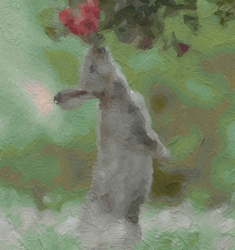To make the output resemble a painting more closely, we added realistic brush strokes to our render. We also implemented an algorithm to modify the original oil on canvas texture we obtained as a result of our milestone feedback. This involved first extracting areas with high-frequency content (i.e. edges) from the image we want to monet-ify. This was done by using OpenCV to compute horizontal and vertical gradients with cv2.Sobel, then combining them using linear interpolation with cv2.addWeighted, setting both alpha and beta to 0.5. This gave us a final image of all the edges in white on a black background, highlighting regions where we want brush strokes to be more pronounced. We then resized the oil texture image to match the dimensions of the edge image and blended the two using linear interpolation. For regions in the edge image that were entirely black, we filled them with a default RGB color of (200, 200, 200). The resulting texture was saved and used for brush stroke generation, ensuring that high-frequency areas in the image receive more detailed and dynamic strokes. Finally, our apply_canvas_texture function applies a subtle canvas-like texture to the input image by blending it with the texture image created. The texture is first resized to match the input image and converted to grayscale to avoid introducing color changes. Both the image and texture are converted to NumPy arrays to allow pixel-wise blending. The texture is then merged with the original image using a weighted average controlled by the strength parameter, which determines how prominent the texture appears. Finally, the result is clipped to valid pixel values and converted back to a PIL image. This technique gives the final image a natural, printed-on-canvas look without altering the original colors significantly.